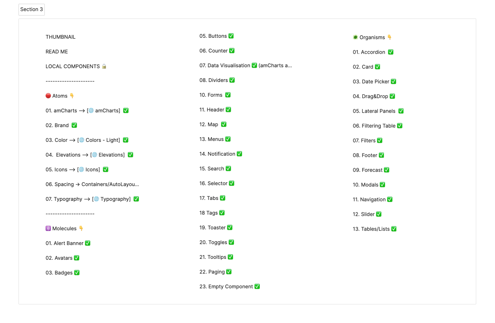 Visual Indicators: Implemented the use of emojis to quickly visualize the status of components (done/in progress/updated).
